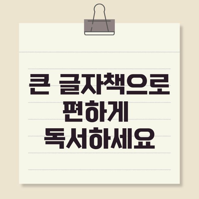독서의 즐거움은 누구에게나 열려 있습니다. 큰글자책을 통해 편안하게 독서하는 경험을 해보시기 바랍니다.